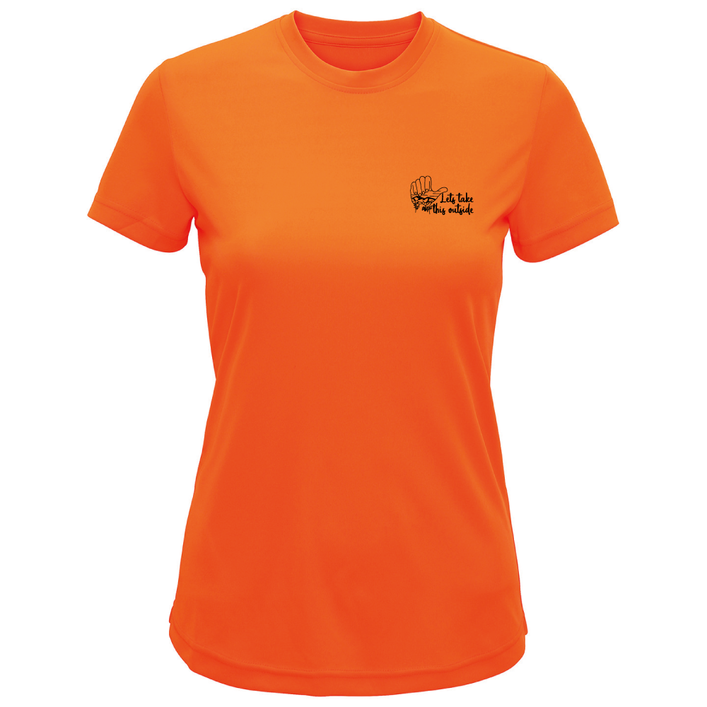 Our luxurious new 100% eco friendly t-shirts have a very soft feel with colours that will make any of our prints pop. This design features the Pen and Ink Studios designed for Adventure Queens print, Let's Take This Outside, printed smaller to the left of the chest on the front of the shirt, the logo comes in black or white on 10 new colours in ladies sizes or 14 new colours in our unisex fit styles which can be found here