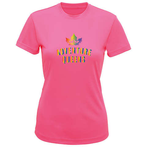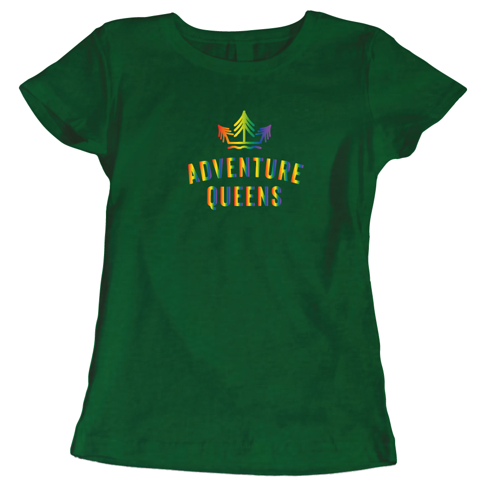 Our luxurious new 100% eco friendly t-shirts have a very soft feel with colours that will make any of our prints pop. This design features the brand new Adventure Queens Rainbow logo design on the front of the shirt, the logo comes in black or white on 10 new colours in ladies sizes or 14 new colours in our unisex fit styles which can be found here
