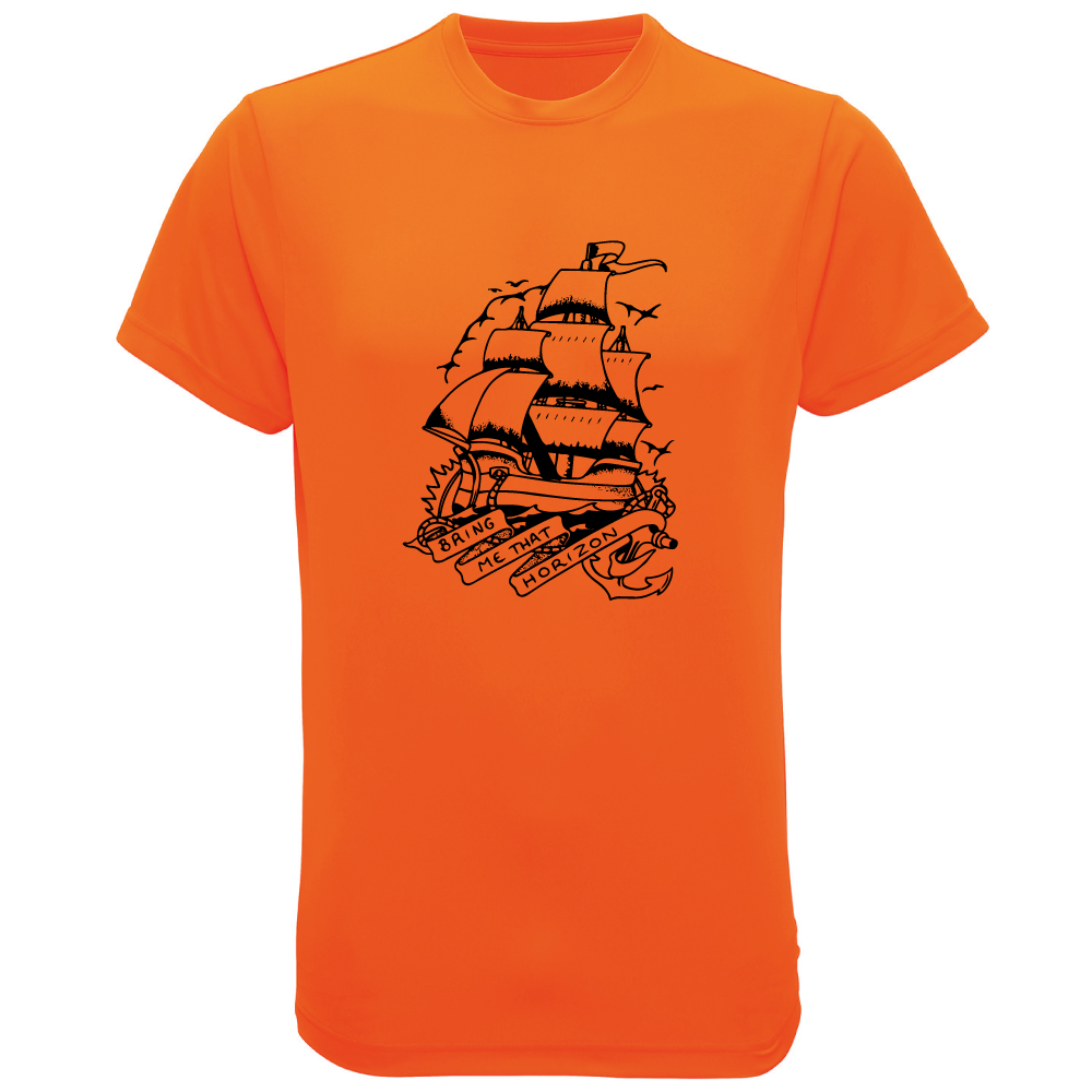 Embrace your love for the ocean with the Bring Me That Horizon t-shirt, perfect for sea lovers and adventurers alike. Whether you're a sailor, surfer, or someone who loves exploring coastal waters, this t-shirt celebrates the spirit of adventure and discovery out on the open sea. With a timeless phrase that resonates with explorers always seeking new horizons, this is the ideal t-shirt for any ocean enthusiast.