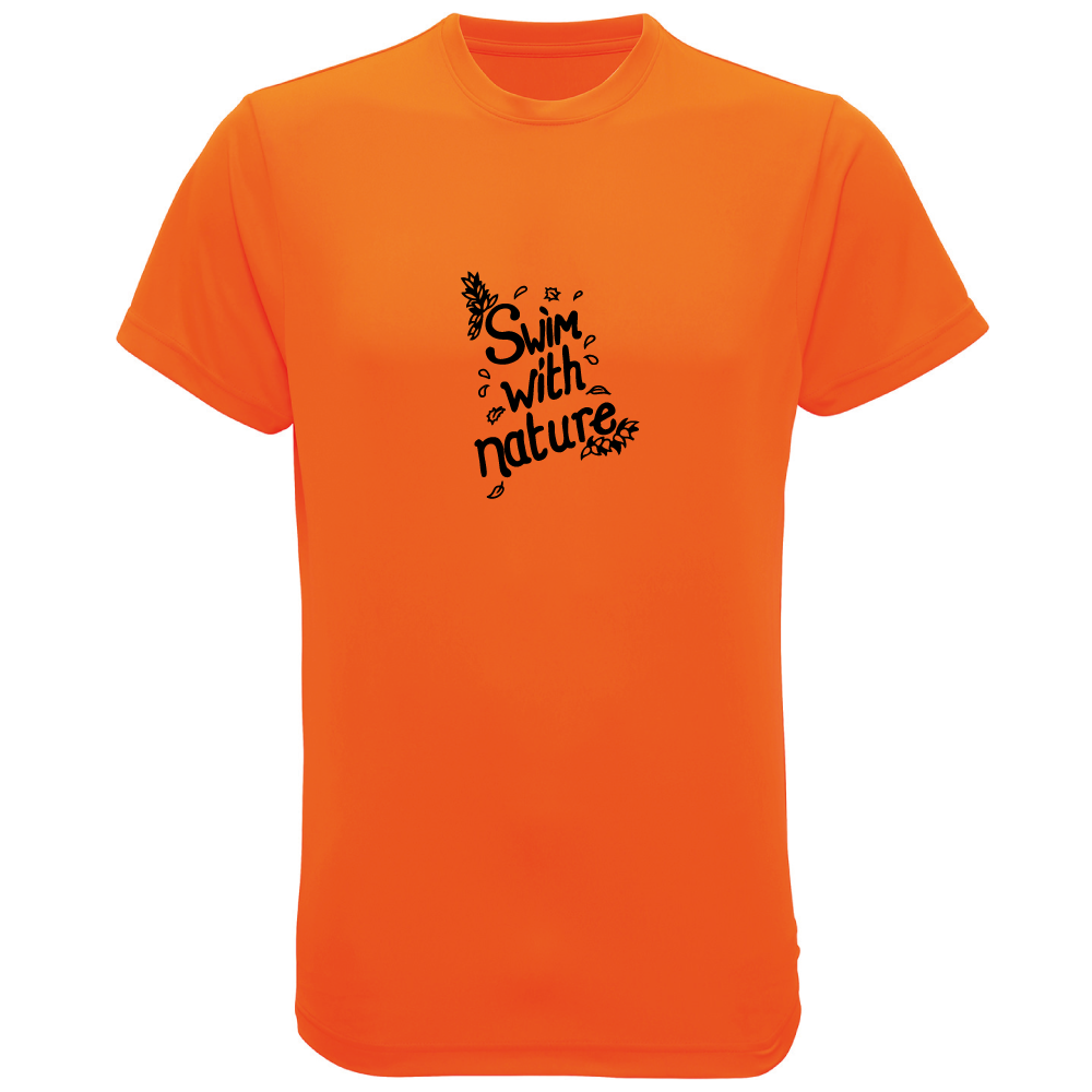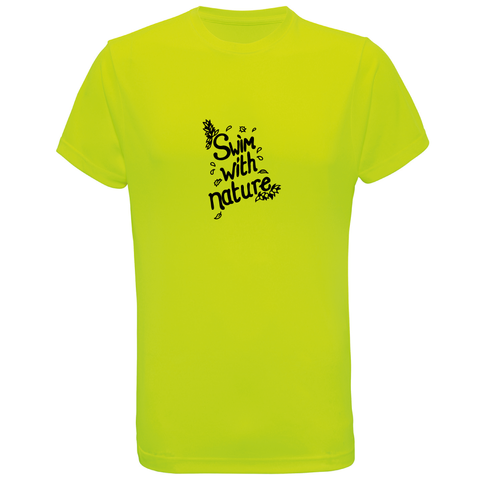 Embrace your love for the outdoors with our Swim With Nature wild swimming themed t-shirt. This unique design features beautiful handwritten text and charming illustrations of floating leaves, making it clear that you relish swimming in the refreshing sights and sounds of nature. Perfect for wild swimming enthusiasts and nature lovers, this t-shirt is a must-have for your adventure wardrobe.